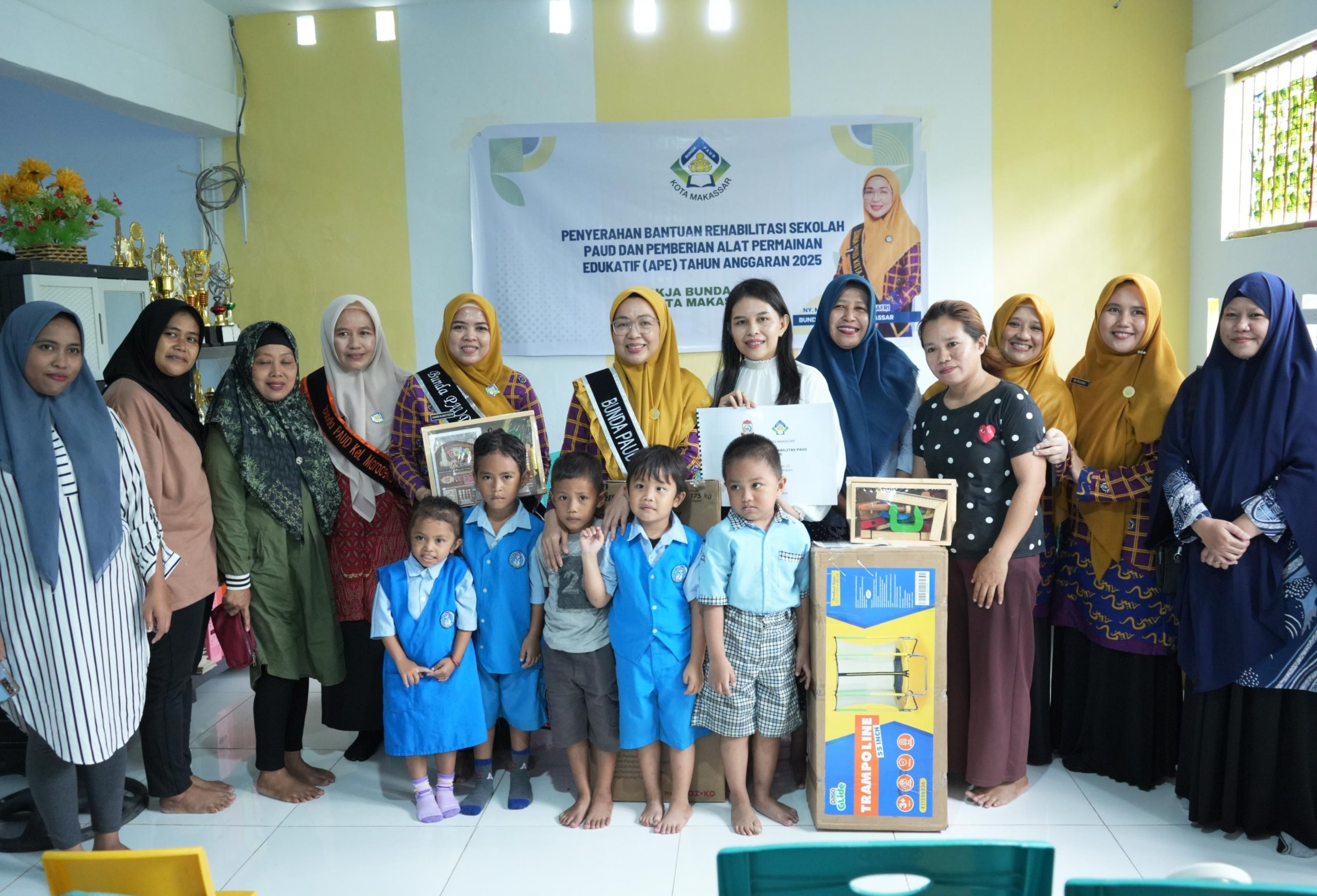 SeputaranSulsel, Makassar — Bunda PAUD Kota Makassar, Melinda Aksa Munafri, menyerahkan bantuan rehabilitasi fisik bangunan sekolah Pendidikan Anak Usia Dini (PAUD) serta Alat Permainan Edukatif (APE) Tahun Anggaran 2025 kepada sejumlah PAUD di Kota Makassar, Minggu (14/12/25).